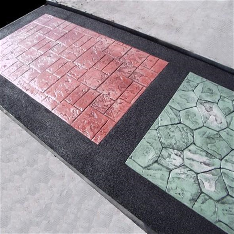 4.彩色脫模粉處理:施工的表面均勻拋撒彩色脫模粉,將整個表面覆蓋,同時在模具的表面也撒上一些脫模粉;